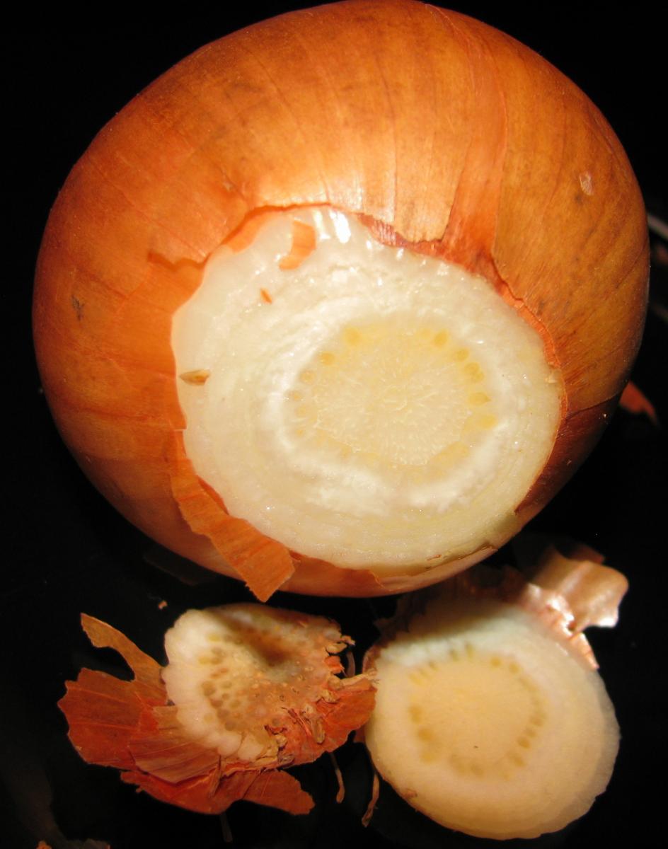 Tak bradavica. Tá pravá a nefaľšovaná, pekná karfiolová. No však cibuľa. Nájdeme si peknú cibuľu, nie na jar zmäknutú z predchádzajúceho roka, taká už má menej síl, ale v lete, na jeseň, v zime, vtedy má cibuľa riadnu silu na ničenie vírusov, nielen bradavicových. Zrežeme ju pri korienkoch. Prvú tenkú vrstvu, a hneď uvidíte vytekajúce biele mlieko. Vyteká pri korienkoch v tvare kruhu a vzhľadom sa podobá bradavici (čím to je?). Pred aplikáciou si nožičku namočíte do vody aby bradavica zmäkla. Trocha ju ošúchate kameňom na tvrdú kožu alebo brúskou (ktorú ihneď treba dezinfikovať striebrom). A až vtedy zrežte cibuľu pri koreni, aby medzitým nezaschla. Cibuľku priložíte na pripravenú bradavicu a nanesiete mlieko. Potom ju zrežete ešte raz a mlieko sa znova objaví. Aj tretíkrát sa dá zrezať, ak krájate jemné plátky. Toto mlieko z nohy nezmývajte, najlepšie je túto procedúru urobiť večer, bradavicu napitú po poslednom mlieku zalepiť a ísť spinkať.