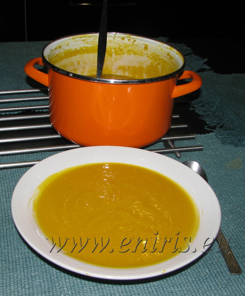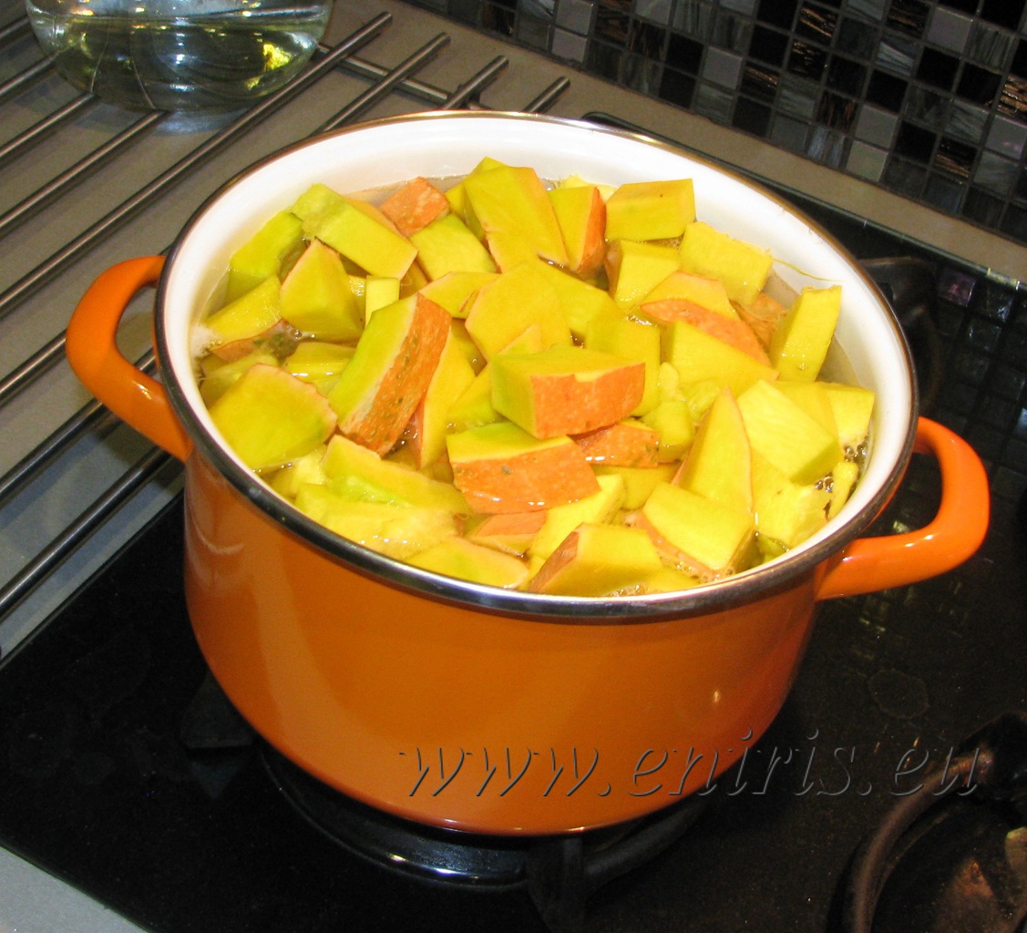 Varíme asi 20 - 25 minút, podľa "veku" tekvice, až kým je mäkká. Potom ju odstavíme, pridáme olej a očistené cesnaky. Tyčovým mixérom ešte takto za horúca všetko spolu zmixujeme, kým dostaneme jemnú, riedku kašu. Potom už nevaríme, už je hotovo. Hmota bude nádherne žltá - oranžová a chuť výrazná, aromatická, neodolateľná. Mne chutí, jedla by som ju aj 5x týždenne. Možno ju dozdobiť petržlenovou vňatkou alebo opraženými píniovými orechmi, či praženým sezamom.